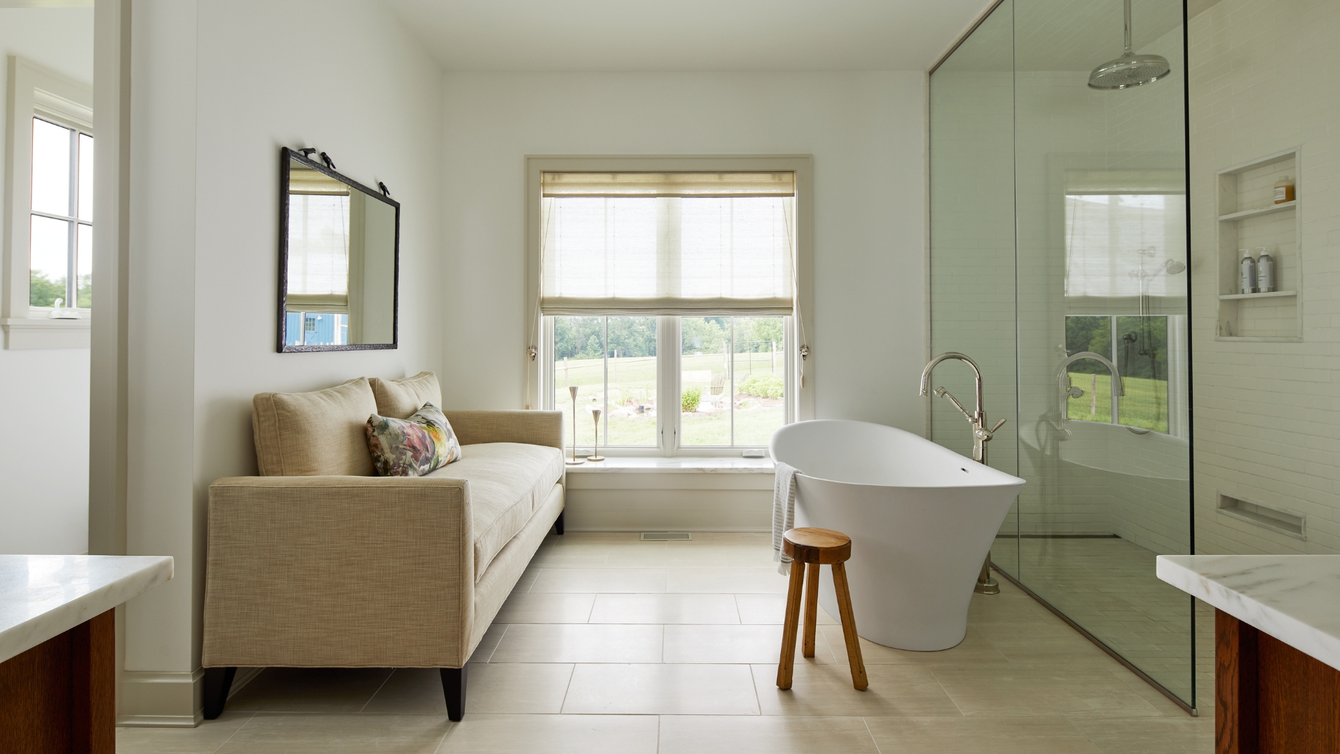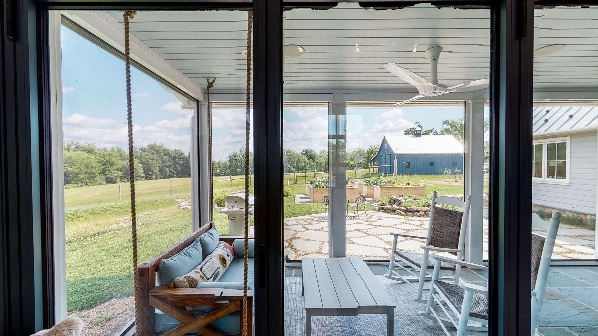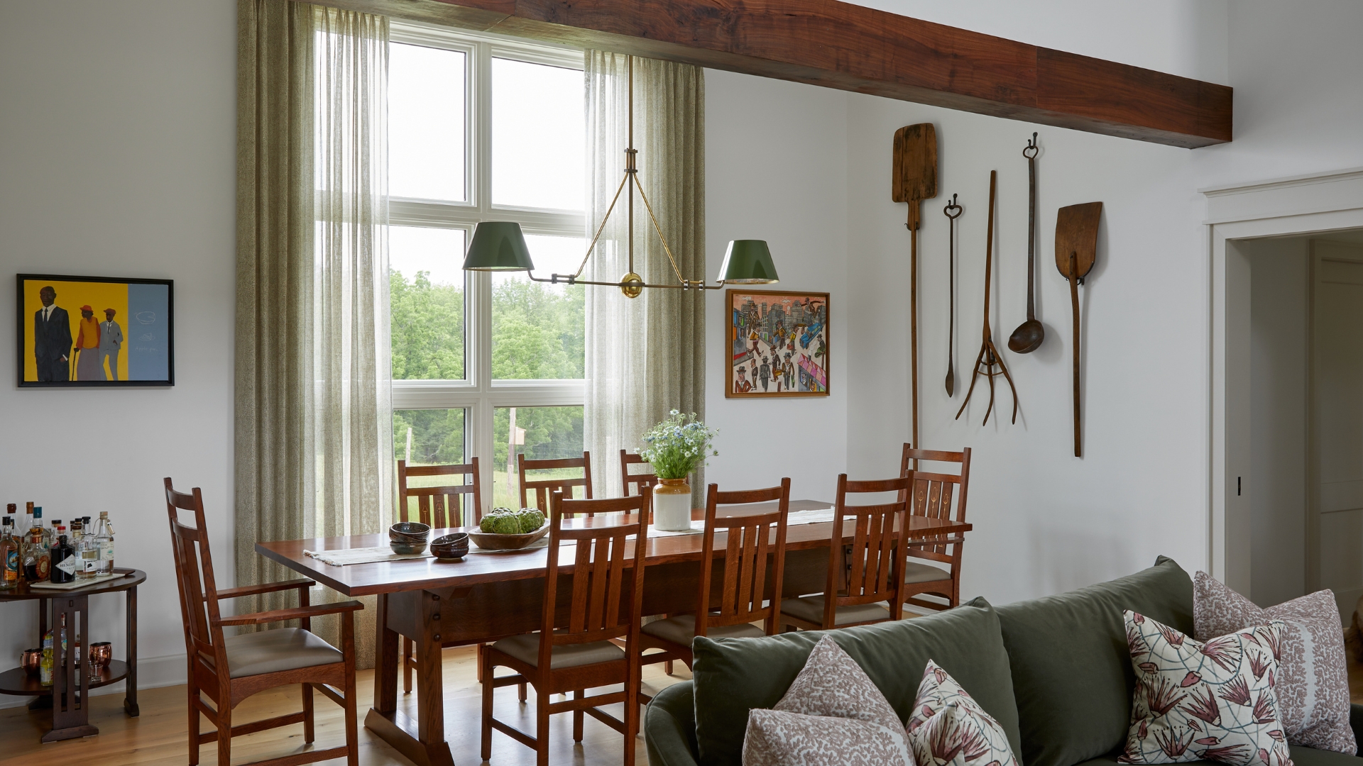 Throughout Cold Brook Farm, rooms would have large floor-to-ceiling windows to bring the outdoors in, and the emphasis on the view of the outdoors meant the shape of the home would be long and L-shaped facilitating the efficient use of solar panels on the roof as well.