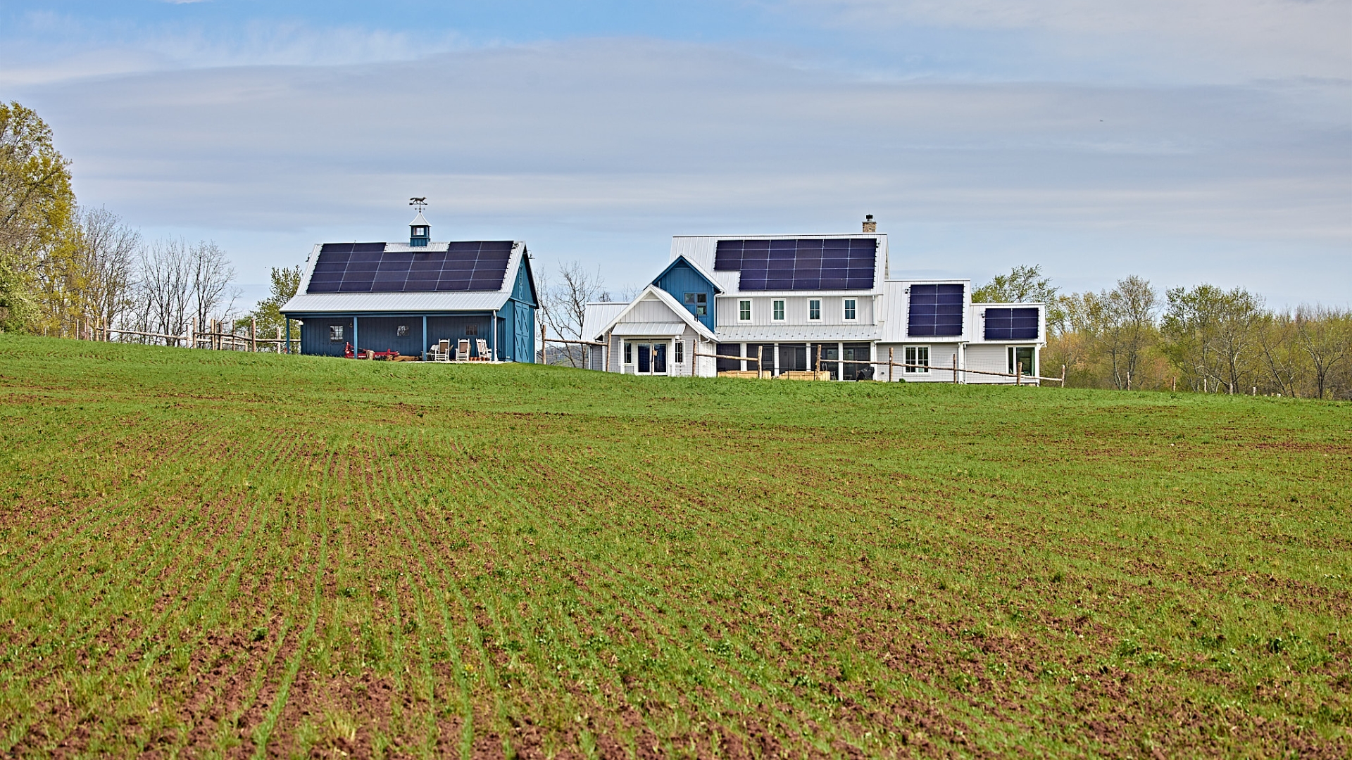 From cellulose insulation and a meticulously designed and constructed air-tight envelope to highly durable and energy efficient aluminum clad triple pane windows from Loewen and innovative TStuds™, we planned every aspect of the Cold Brook Farm building envelope with the WESKetch design-build team. The goal was a zero-energy home capable of creating all the energy used by the household over the course of the year from onsite, renewable sources. In the case of Cold Brook Farm, however, zero energy included 30,000 miles of driving electric vehicles making the choice of the solar power and associated battery storage system for the home essential.