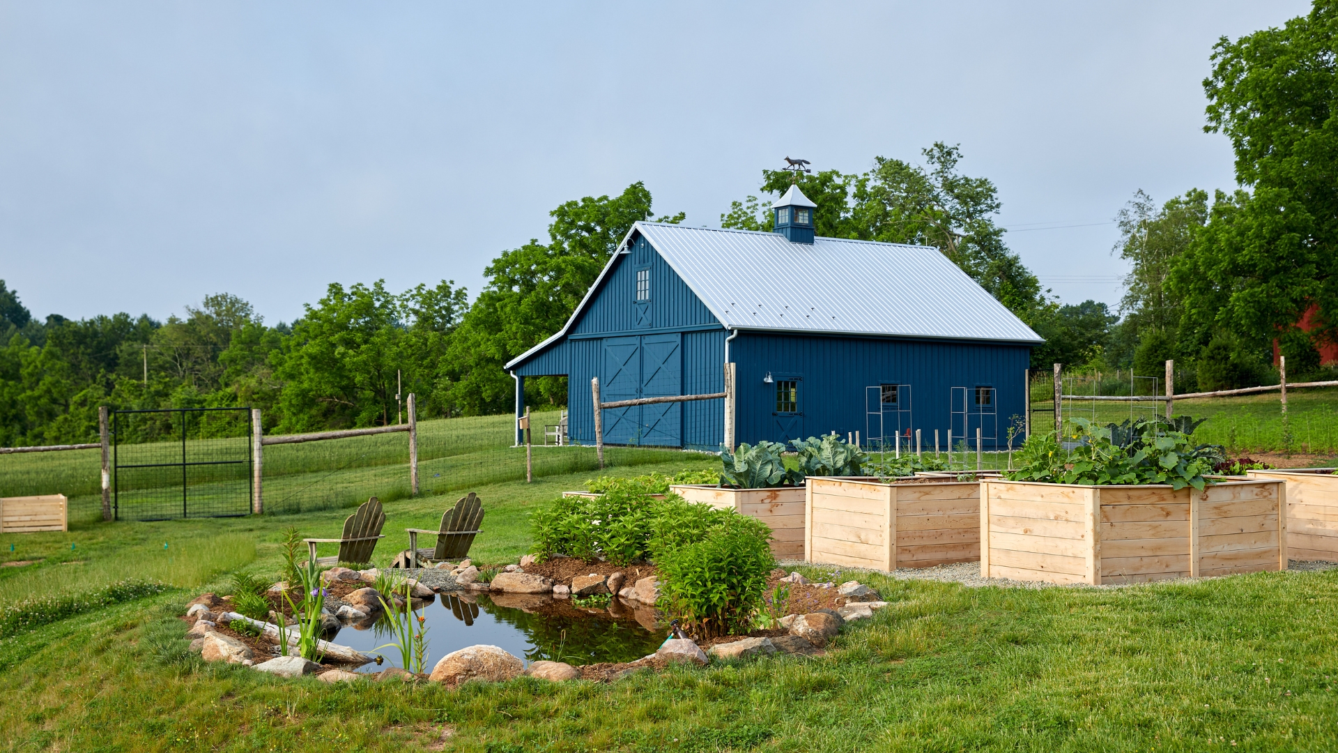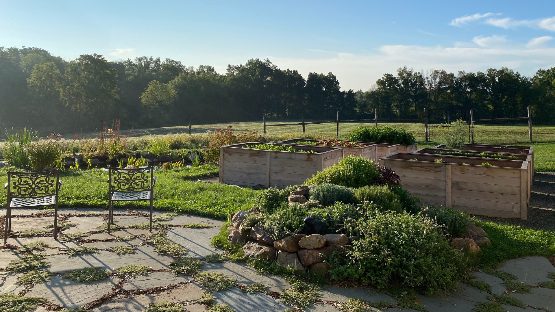 The Plan: Permaculture is an ecological design system, which we used to map out the plantings immediately surrounding the home and barn. We planned for alpine strawberries, chestnut, hickory, apple, cherry, and mulberry trees that would provide fruits and nuts for both us and the local wildlife. There would be numbered zones with the first closest to the home housing our vegetable and herb gardens. The Permaculture plan incorporated an interconnected system of ponds, cisterns, and bioretention basins to recharge the aquifer and direct water away from the home. Cranberries, elderberry, and paw-paw would soak up the water runoff. We envisioned water from the cistern irrigating the vegetable garden, and the interconnected system of water features would provide a home for insects and insect larvae to feed frogs.