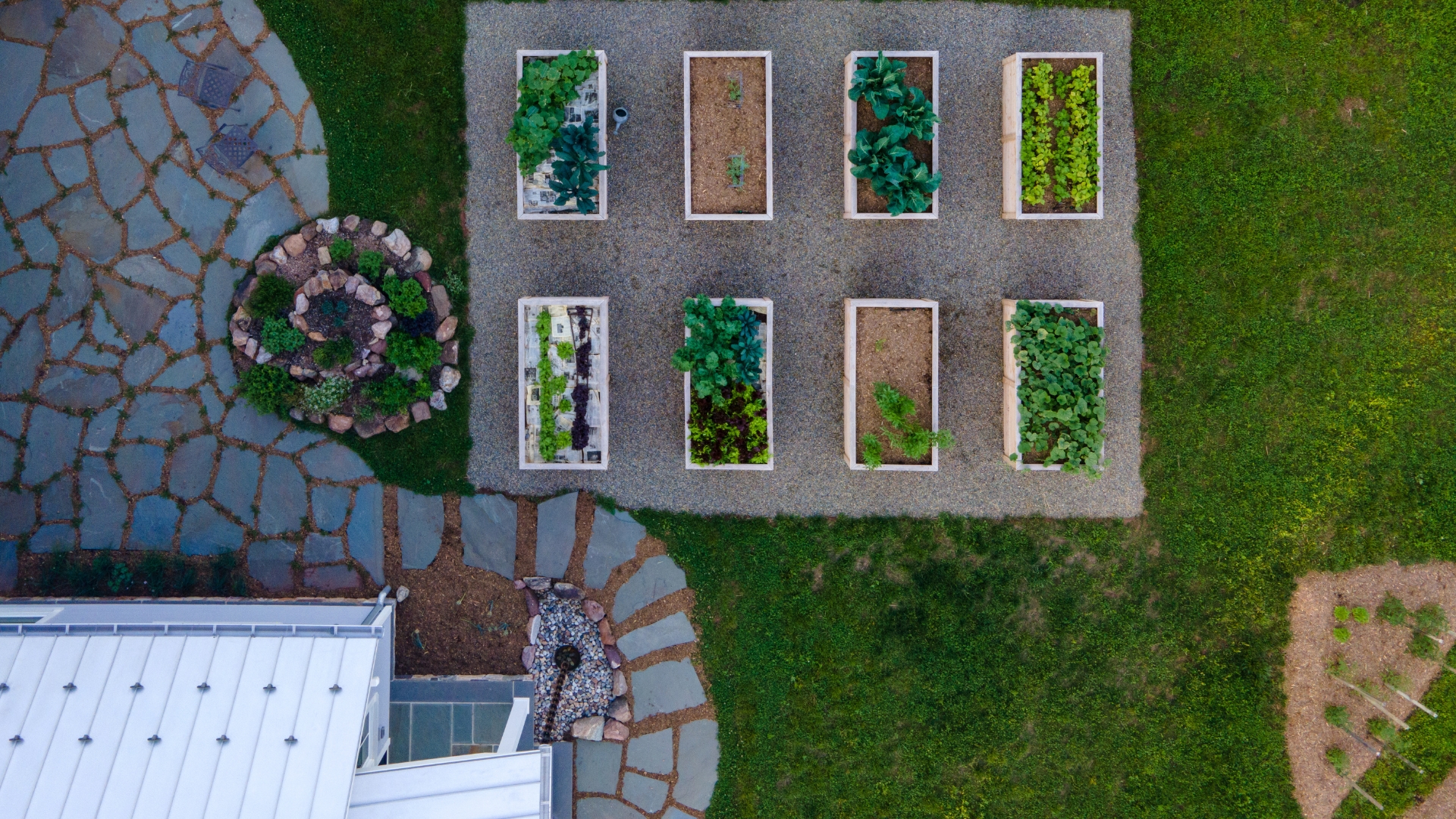 What Happened: We quickly realized the plants in any Permaculture plan take years to grow to maturity and many growing seasons. Deborah spent days getting seeds into the ground, and when our 315-foot bioretention swale grew in with more weeds than flowers, we weeded and mowed it ourselves repeatedly in time for a bounty of perennials to bloom in the late summer. The array of seed mixes perfectly suited to our soil and exposure to the sun came from a local nursery specializing in native plants and was well worth the wait, but we learned that parts of the colorful Permaculture plan beautifully sketched on drawing paper were, in fact, representative of an evolution that would only come to life over time.